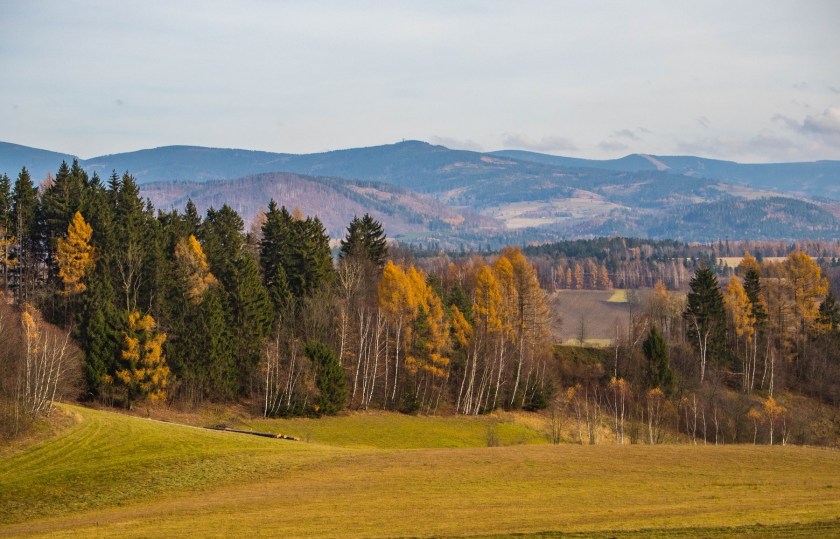 Dłuższe siedzenie w domu pomaga w sortowaniu starszych fotografii. W ten sposób powróciłem do szybkiego listopadowego improwizowanego wypadu na granicę Gór Bystrzyckich i nowych dla mnie Orlickich. Tego typu wypady stają się niejako moją domeną, tym razem jednak przeszedłem samego siebie bo oto obudziłem się o 5 rano, zdecydowałem, że trzeba gdzieś pojechać, wsiadłem w pierwszy możliwy pociąg (do Międzylesia) i dopiero w ciuchci zacząłem kombinować gdzie wysiąść, co zrobić, co zobaczyć. Tak też dojechałem do stacji końcowej i wzdłuż polsko-czeskiej granicy przewędrowałem niesamowicie widokowym szlakiem z hajlajtem w postaci schroniska Kašparowa Chata na zboczach wzgórza Adam.