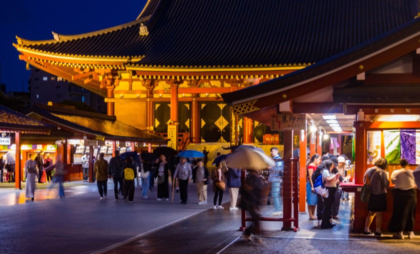 Cześć! Dziś zabiorę was do miejsca arcysławnego, odwiedzanego chyba przez większość przybywających pierwszy raz do Tokio turystów, do najsłynniejszej (a przez to najbardziej zatłoczonej) świątyni japońskiej stolicy, Sensō-ji. W poniższym niekontrolowanym potoku myśli zmierzymy się z jej sławą i historią, zaglądając doń tuż po zachodzie słońca… co przyniosło tak kilka plusów jak i minusów. Zapraszam!